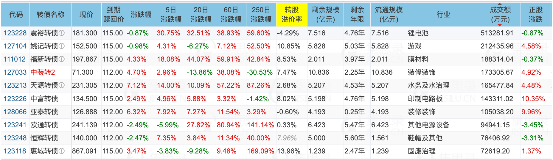 ✦重点关注配债股池: