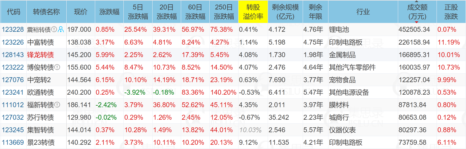 ✦重点关注配债股池: