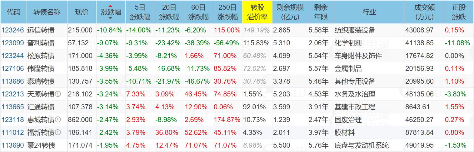 ✦今日跌停转债/正股:
