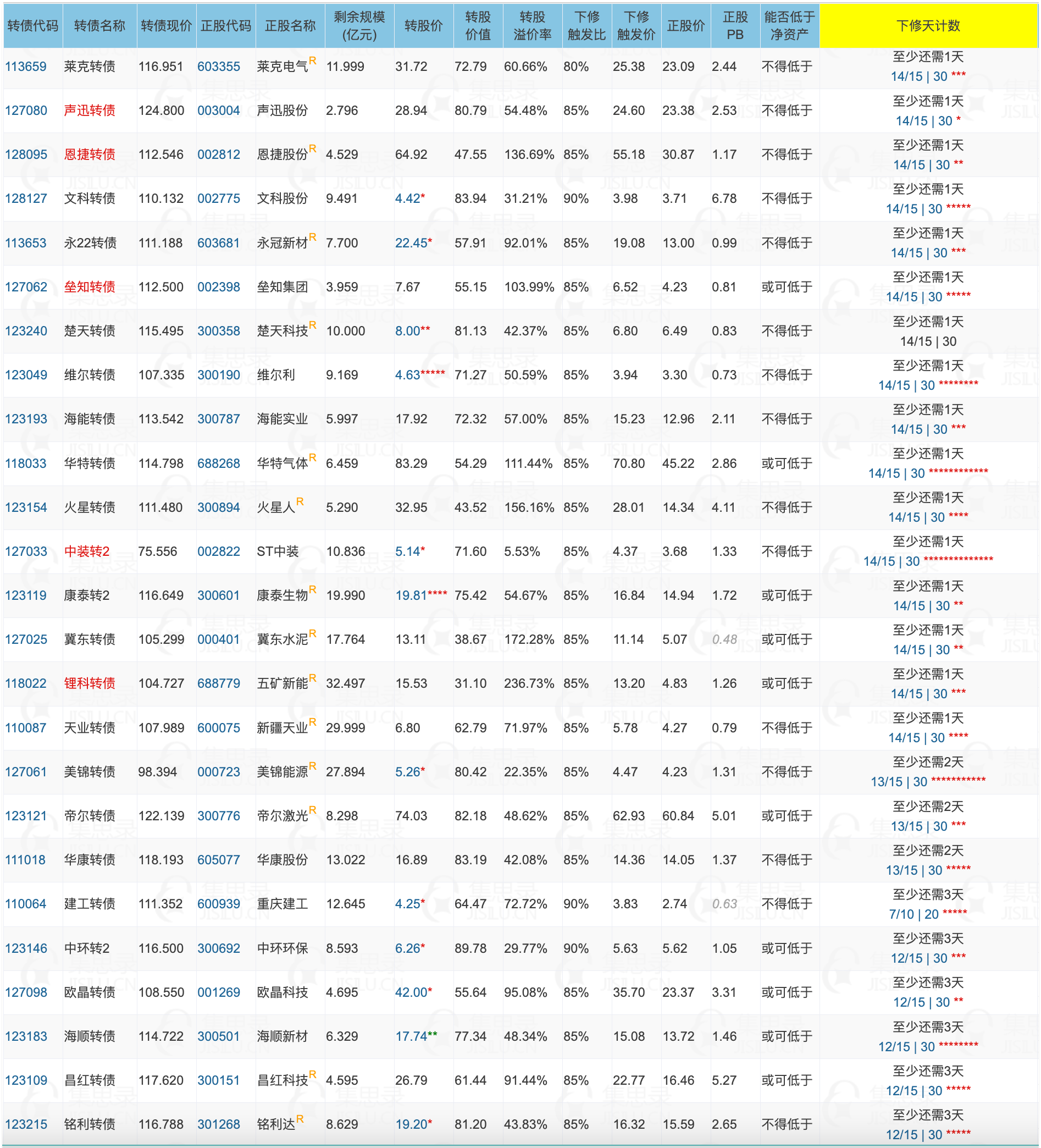 ✧重点关注: 流通规模小于2亿/百元含权大于20/安全垫大于5%,已同意注册/上市委通过阶段的配债股
