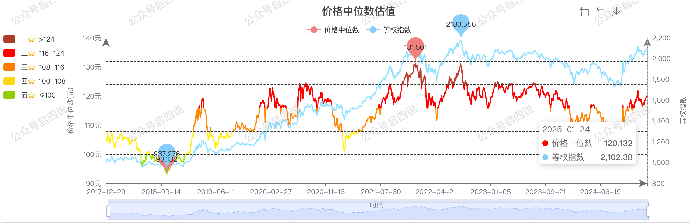 当前中位数:118.693,当前相对上周上涨1.433元,位于二星级估值区