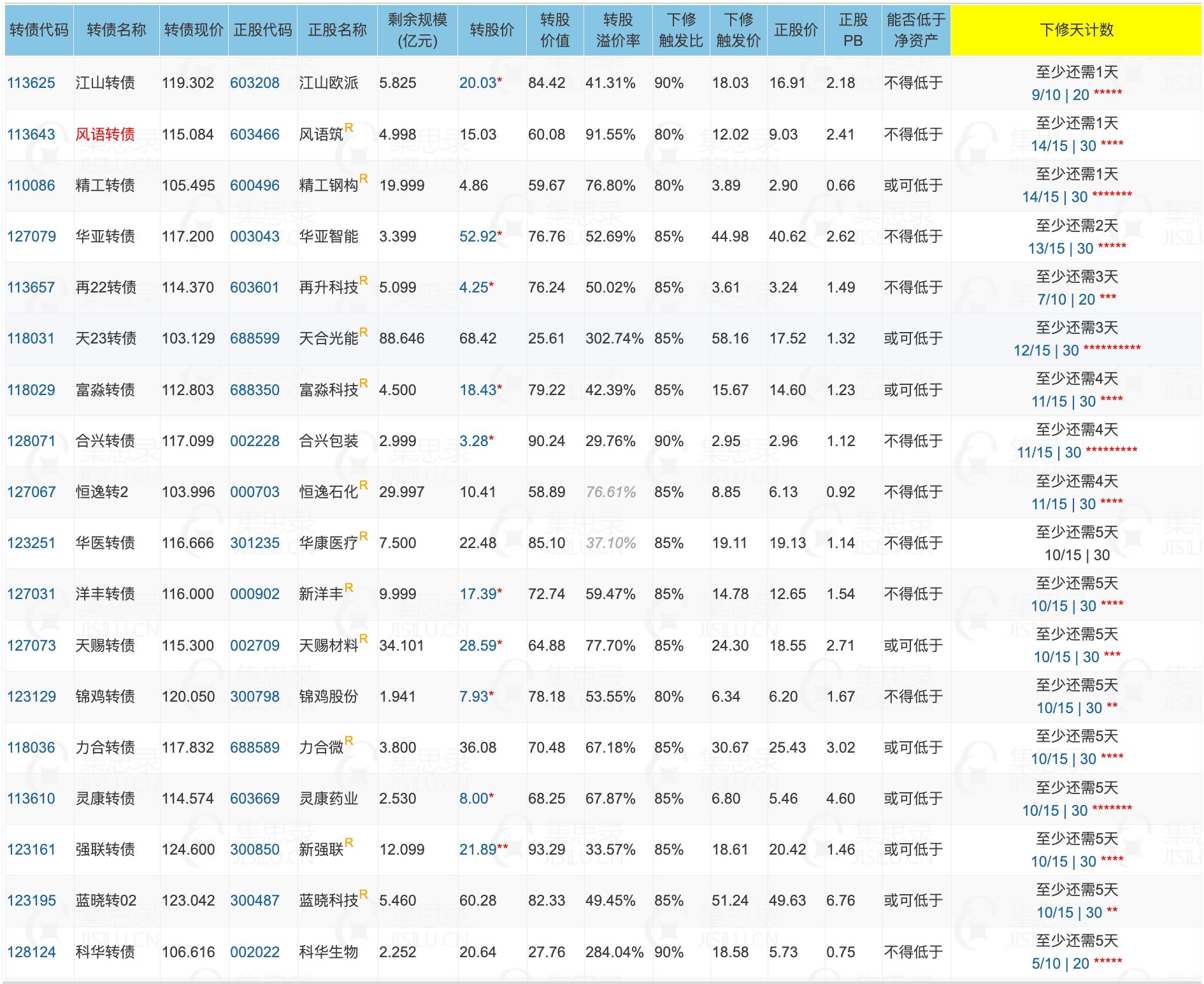 其中转股价值大于130元,且规模大于3亿或溢价率大于5%的转债,需要注意强赎后杀溢价的风险。