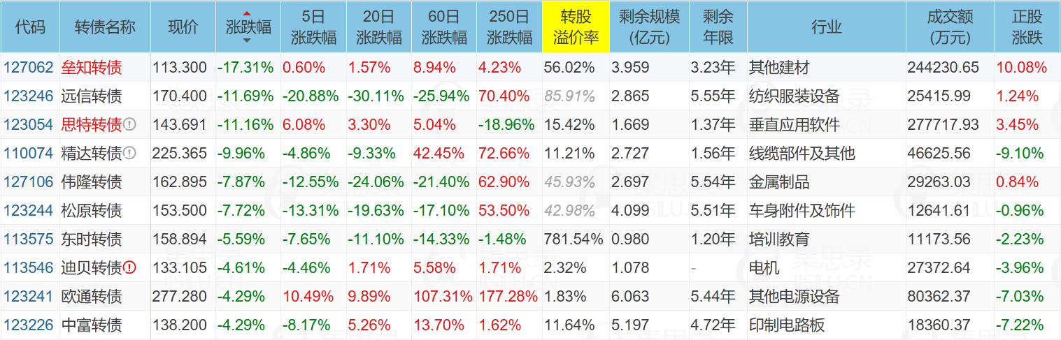 ✦今日跌停转债/正股: