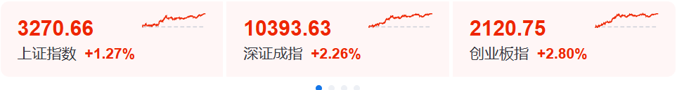 A股今日三大指数集体上涨,截至收盘,沪指涨1.27%,深成指涨2.26%,创业板指涨2.8%,北证50指数涨5.51%。全市场成交额15548亿元,较上日放量2545亿元。全市场超4800只个股上涨。