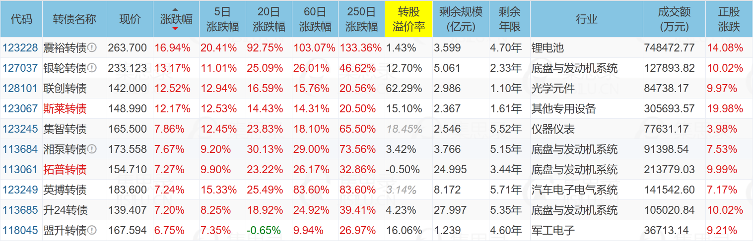垒知集团(-8.39%)、领益智造(10.02%)、斯莱克(19.98%)、爱玛科技(-5.77%)、震裕转债(16.94%)