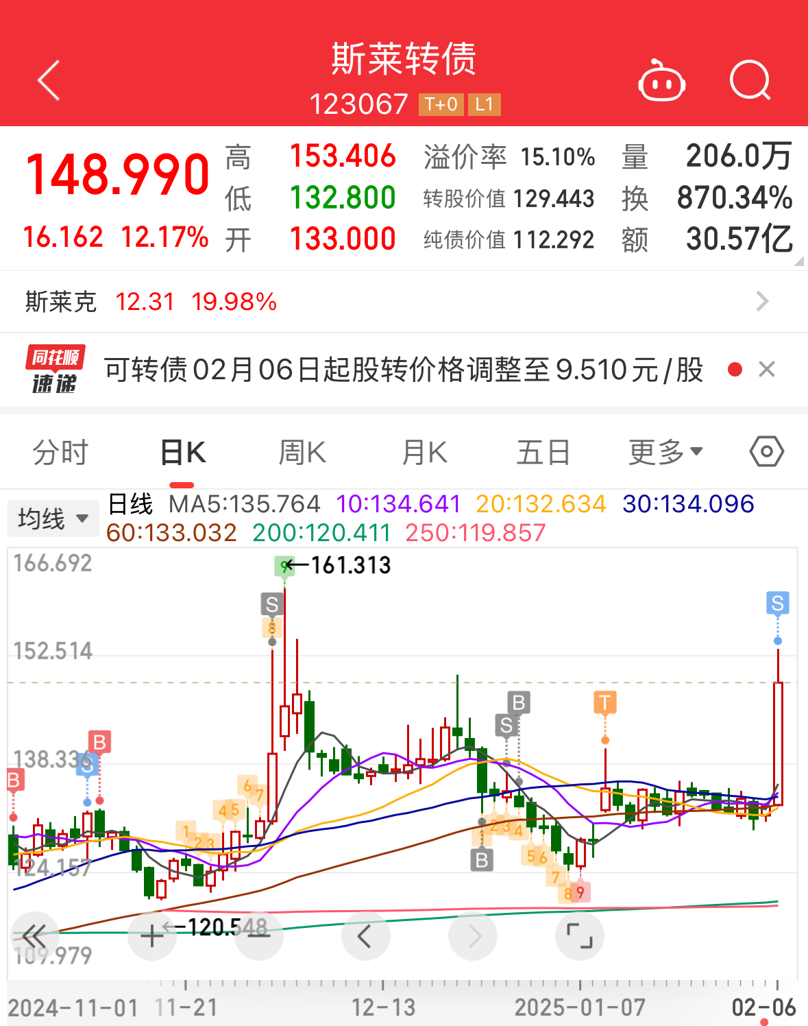 1、蛇年吃蛇肉,今天吃到了斯莱转债的肉,盘中最高涨幅15%+。133.35建仓,均价142.5清仓,本轮共盈利6.86%。
