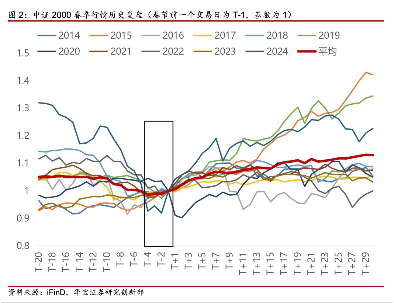 二是,中证全指又接近布林通道上轨了,接近压力位,此时没有的大的政策刺激或者新的利好出现,热度也很难持续。复盘 2010 年以来的行情,每到春节前的一周,A股市场往往会出现止跌企稳的阶段性低点。春节前后,小盘股表现尤其抢眼,赔率和胜率都不错。不过,这种行情一般持续到春节后五个交易日左右,等到两会临近(2月下旬)时可能会进入调整期或者出现风格切换。