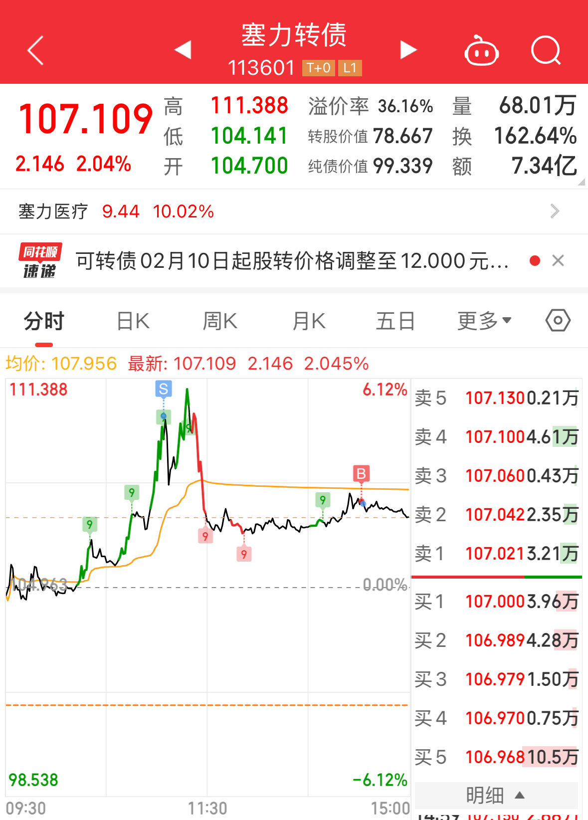 1、塞力转债,上周五刚买入,今天就吃肉。尾盘又接了回来,目前盈利5.7%。