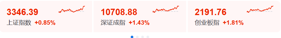 A股今日三大指数集体上涨,截至收盘,沪指涨0.85%,深成指涨1.43%,创业板指涨1.81%,北证50指数涨1.17%。全市场成交额17118亿元,较上日放量339亿元。全市场超3500只个股上涨。