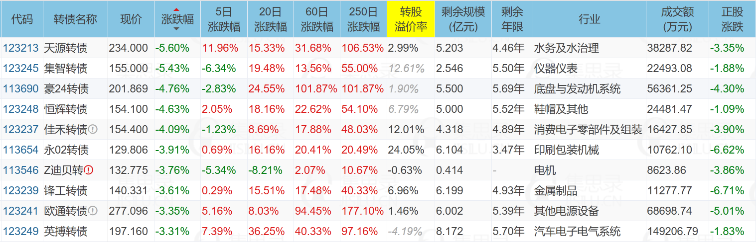 ✦今日跌停转债/正股: