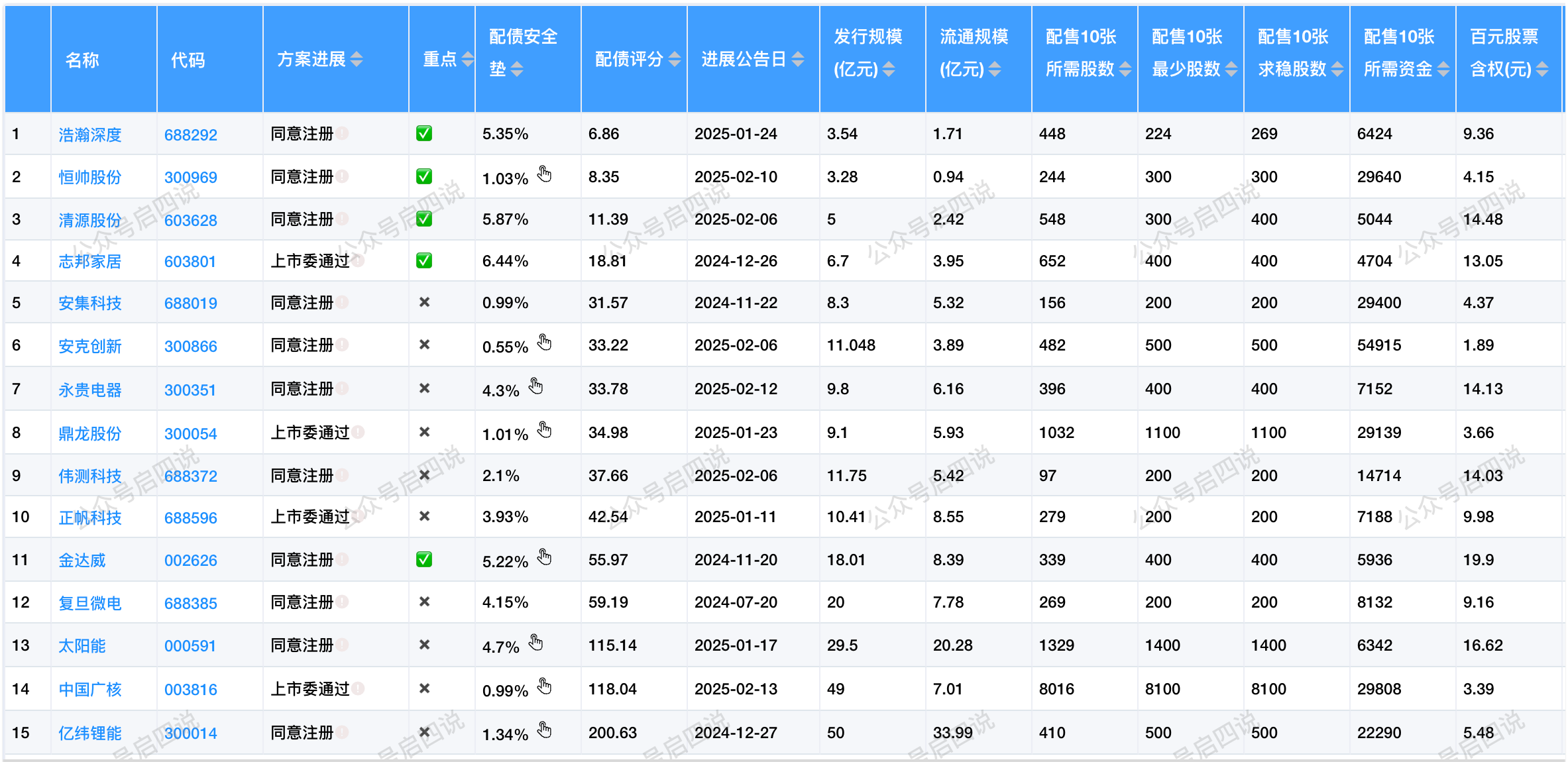 目前还有15只配债股在同意注册或上市委通过阶段,在等待发行中。