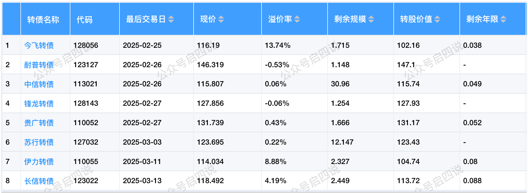 其中转股价值大于130元,且规模大于3亿或溢价率大于5%的转债,需要注意强赎后杀溢价的风险。