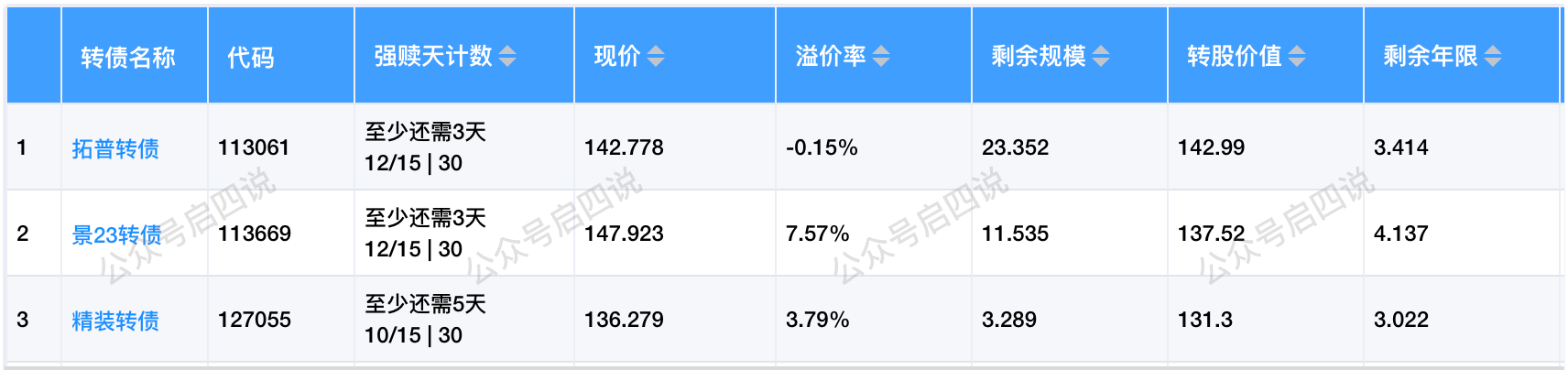未来5个交易日内,将有3只转债最快可以满足强赎条件。