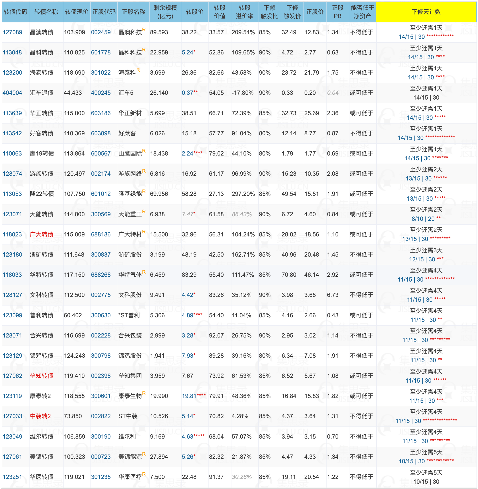 多说一句,行情这么好,还有这么多转债满足下修条件,说明行情分化的很严重。