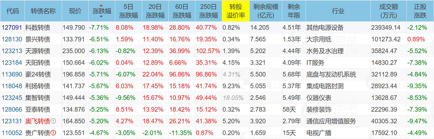 ✦今日跌停转债/正股: