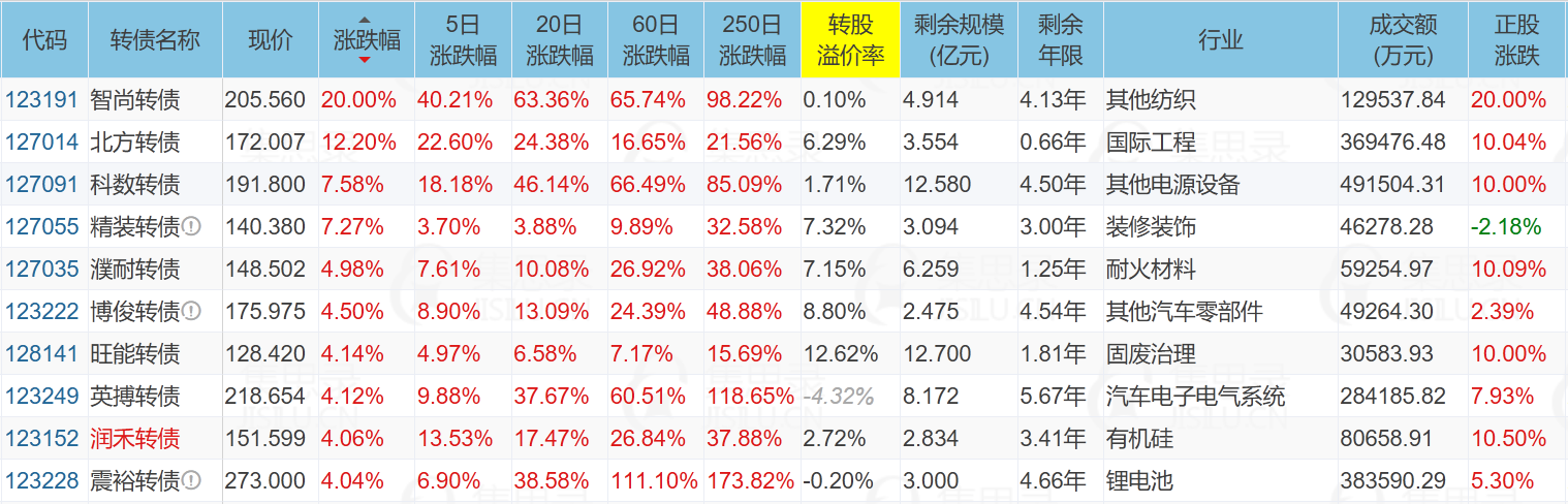 智尚转债、旺能环境、科华数据、南山智尚、濮耐股份、北方国际