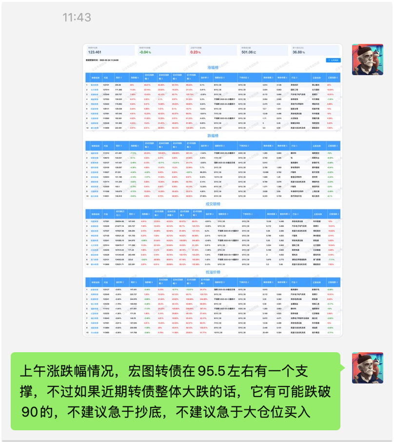 1、上周五布局了康泰转2,今天果然按剧本走了,且价格非常精准地落在了我的预估区间,减了半仓,目前成本降到了120.125元,后续还会按照分析继续操作。