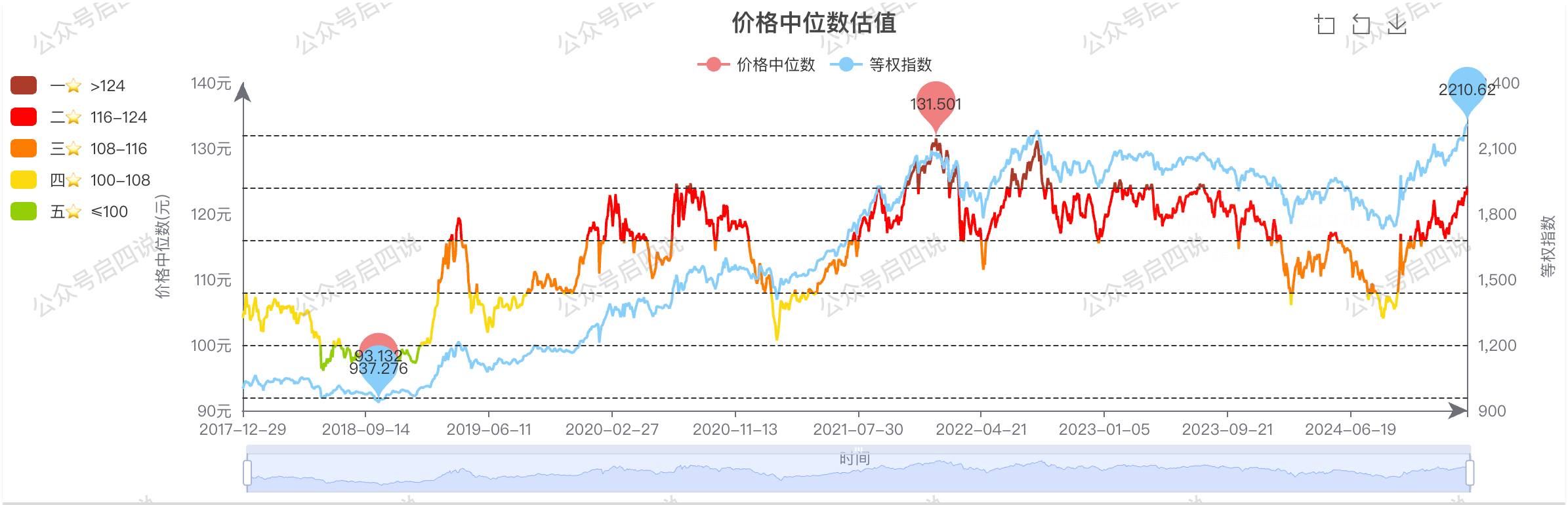 现在转债等权指数已经创新高,中位数124.231元对应的估值位置: