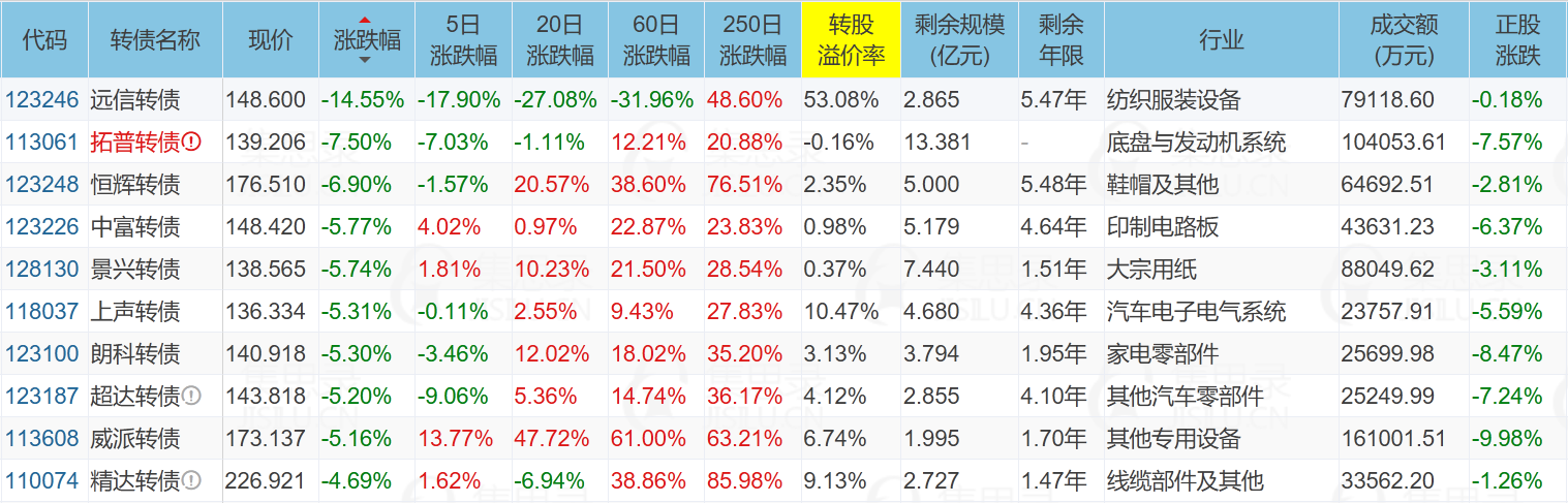 ✦今日跌停转债/正股: