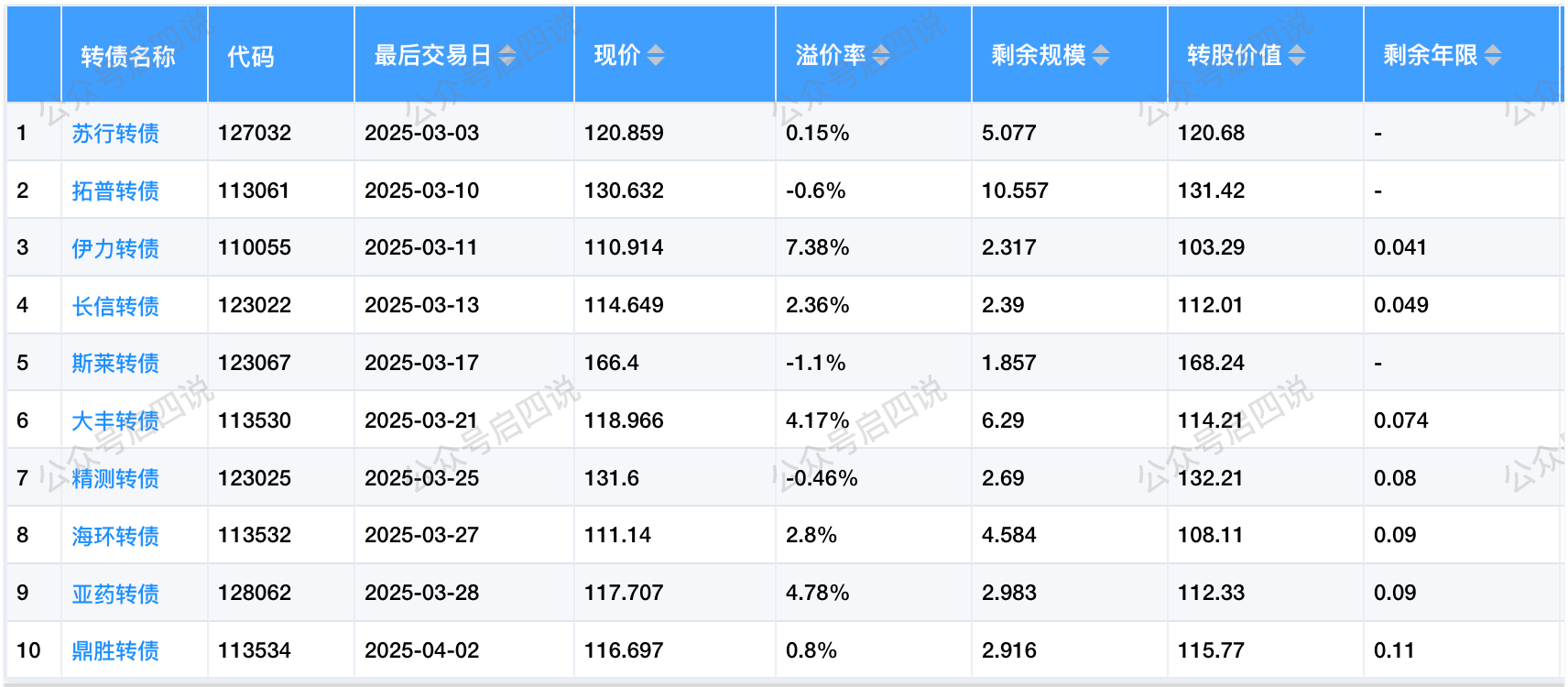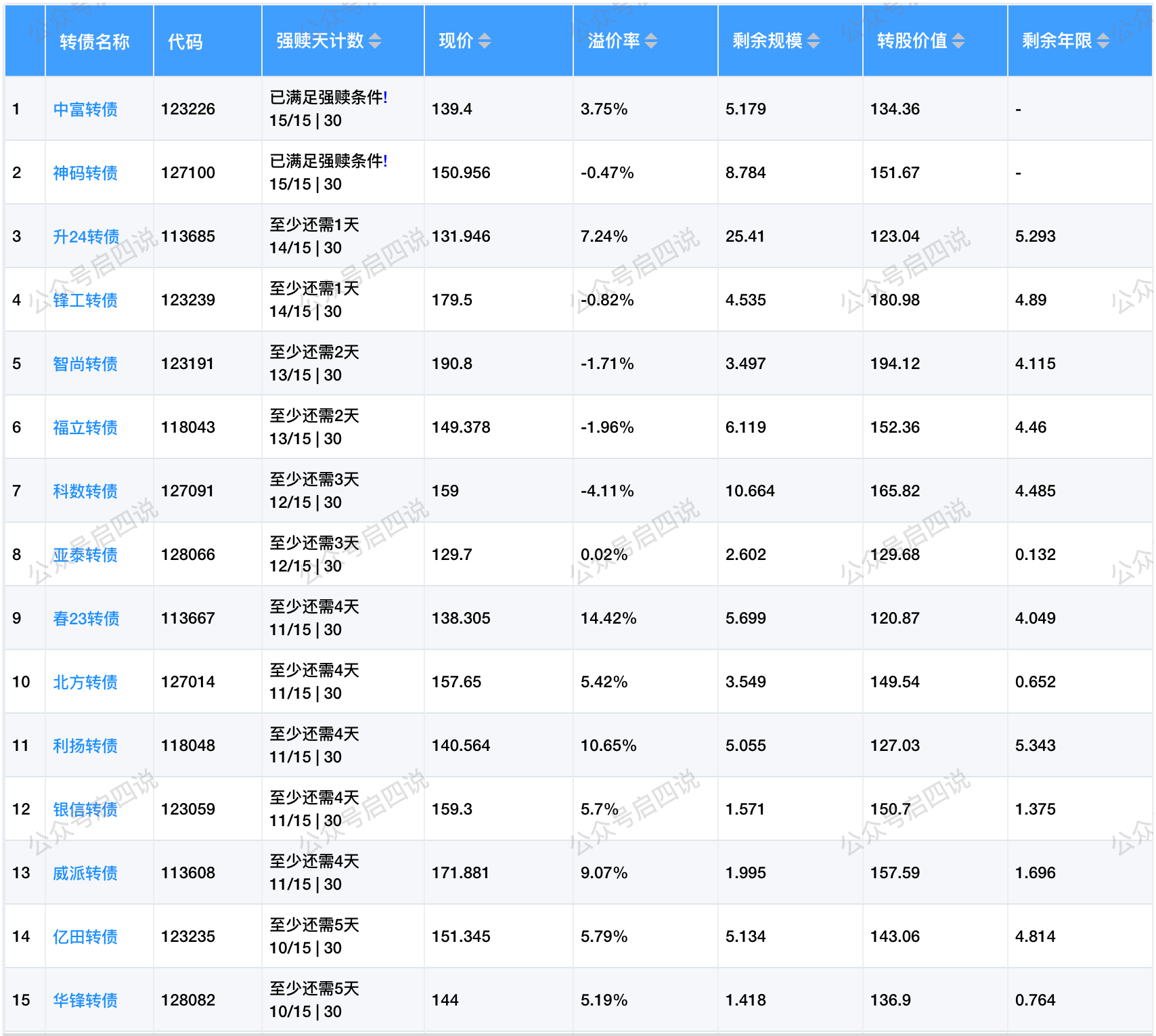 其中转股价值接近130元,且规模大于3亿或溢价率大于3%的转债,需要注意强赎后杀溢价的风险。