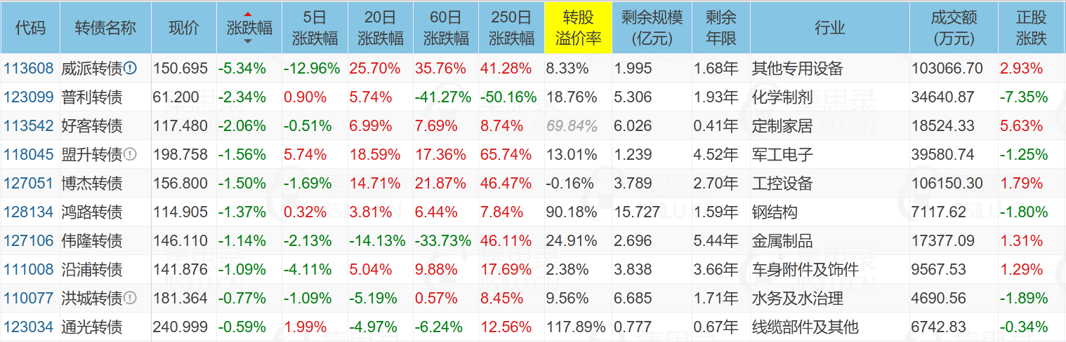 威派转债,公告强赎。上周日和昨晚的文章均提示了风险。今天正股上涨的情况下转债大跌5.34%,截至收盘溢价率还有8.33%,假设明天正股横盘,转债先计提8%的跌幅。