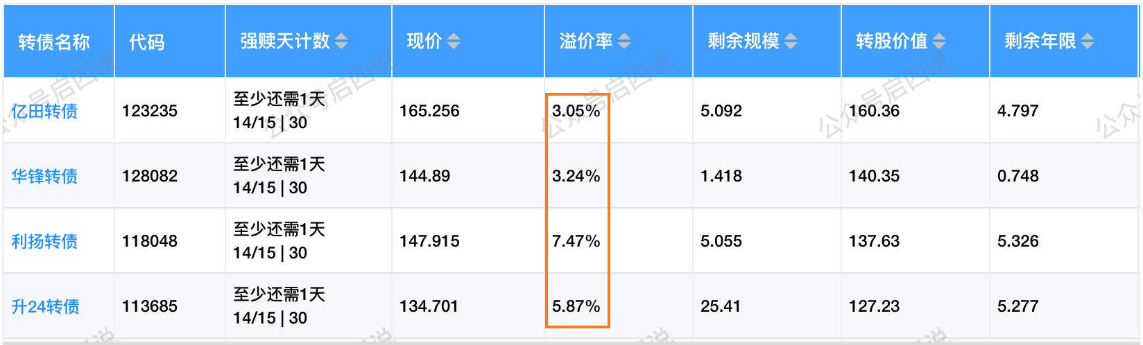 沿浦转债:⾄少还需3天,溢价率2.38%