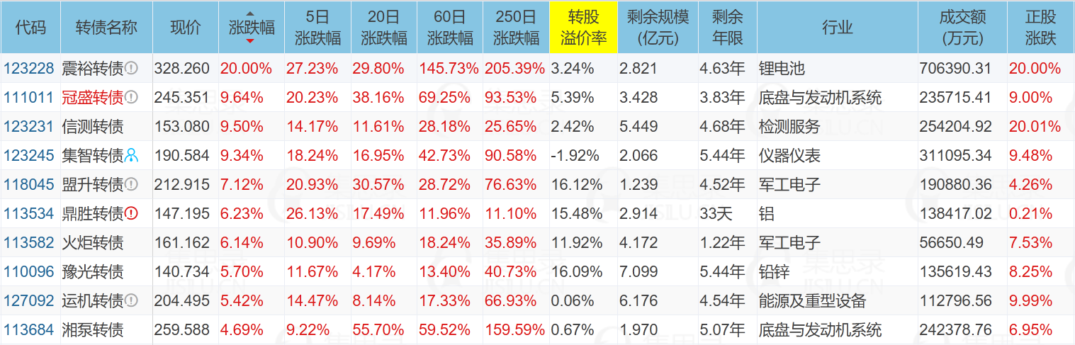 集智股份(9.48%)、信测标准(20.01%)、震裕科技(20.00%)、震裕转债(20.00%)