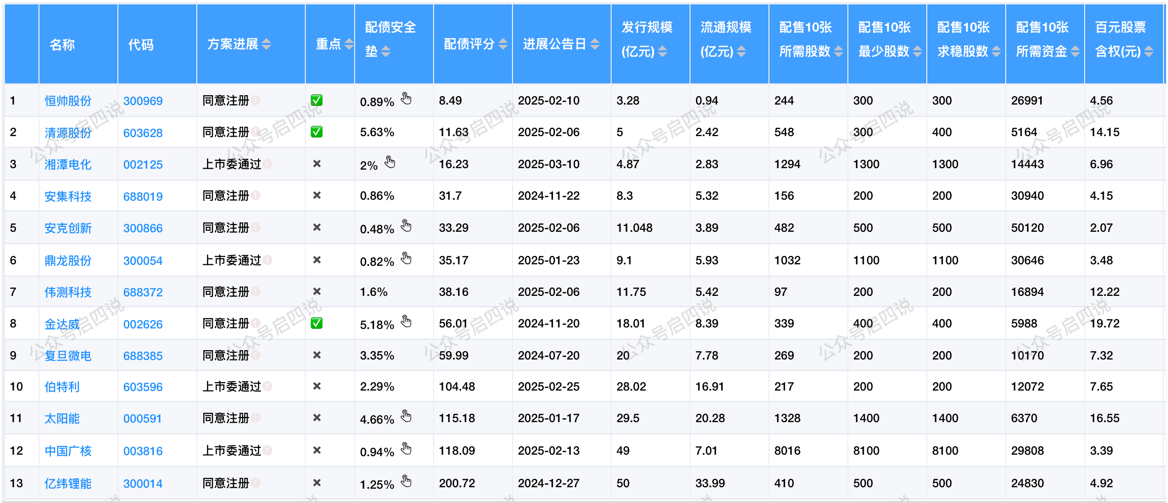 目前还有13只配债股在同意注册或上市委通过阶段,在等待发行中。