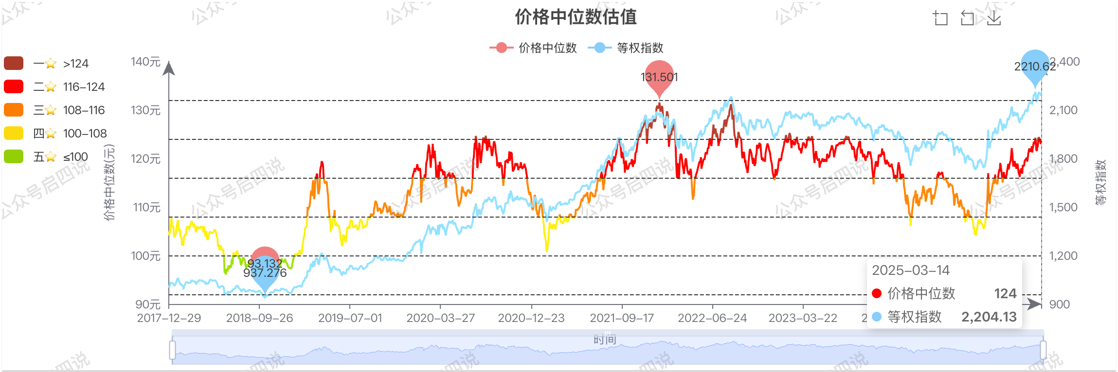 当前中位数:124,当前相对上周下跌0.074元,位于一星级估值区