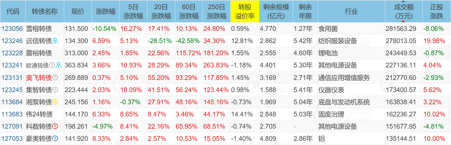 雪榕生物(-8.06%)、远信工业(19.98%)、塞力医疗(-4.69%)、永安转债(20.00%)
