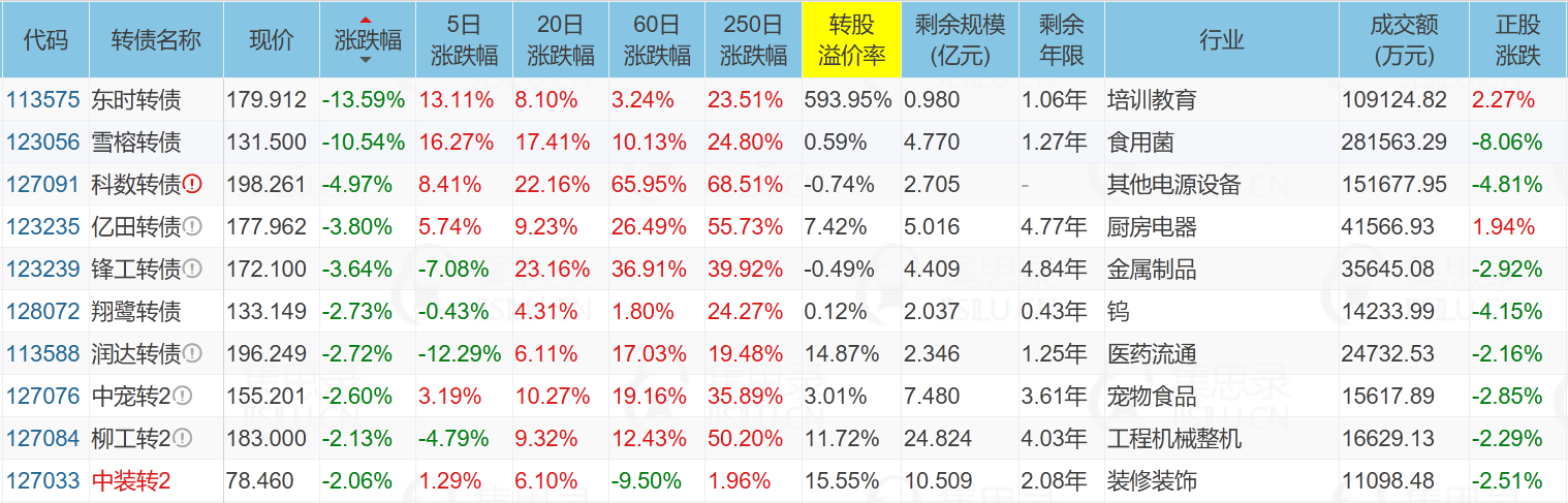 ✦今日跌停转债/正股: