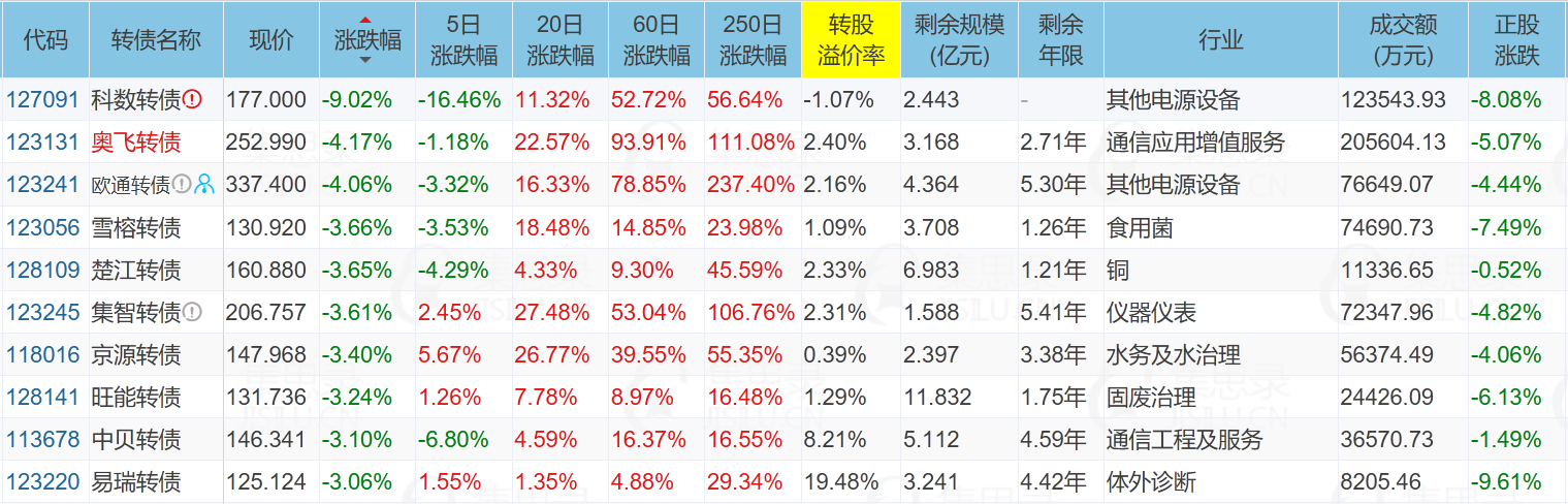 ✦今日跌停转债/正股:
