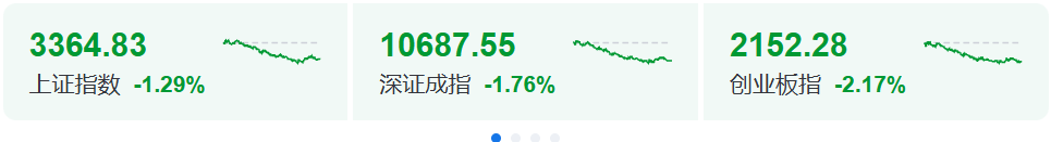 A股三大指数今日集体下跌,截至收盘,沪指跌1.29%,深成指跌1.76%,创业板指跌2.17%,北证50指数跌4.17%。全市场成交额15797亿元,较上日放量1031亿元。全市场超4200只个股下跌。