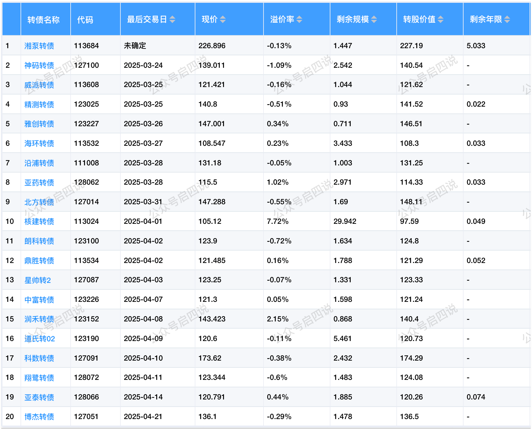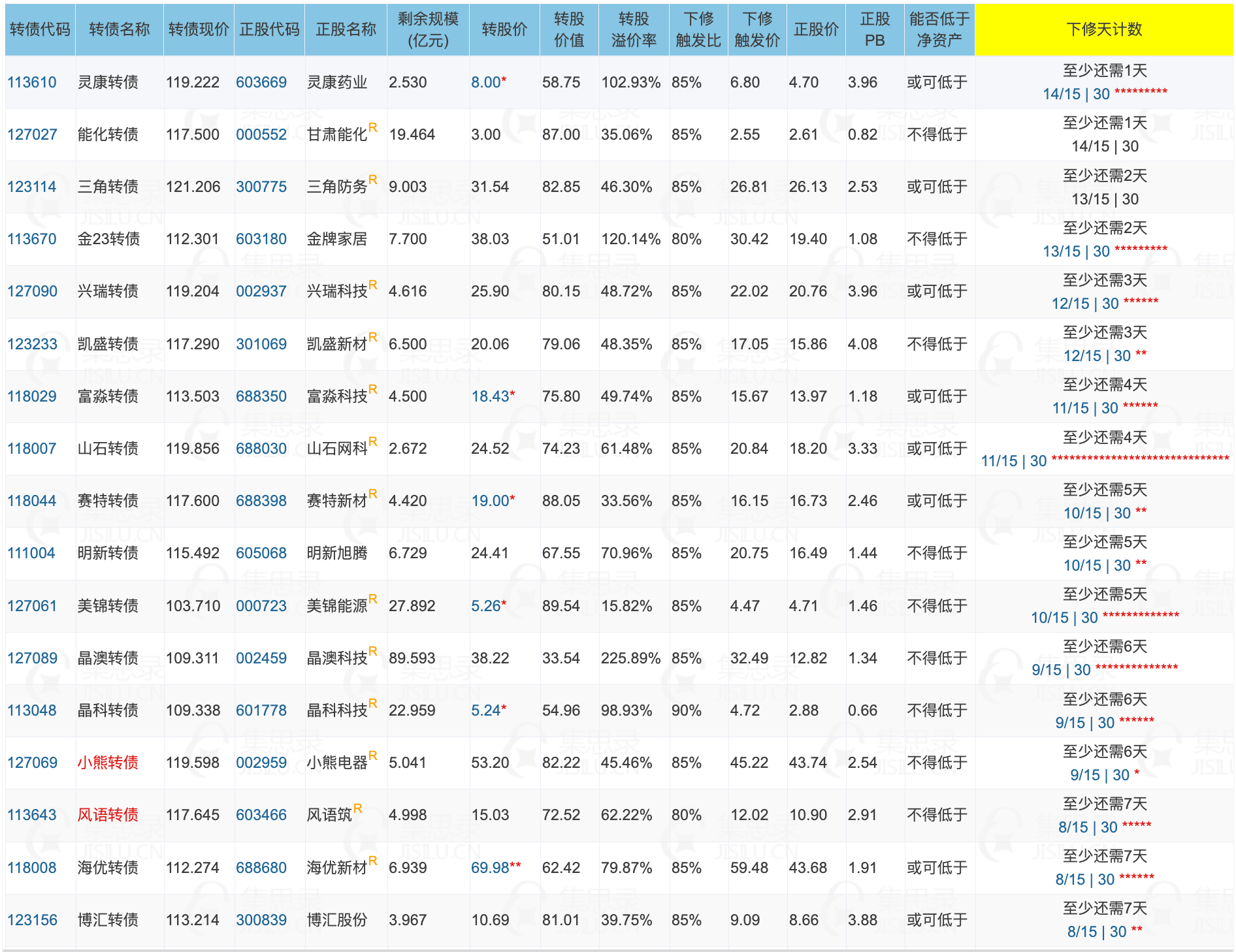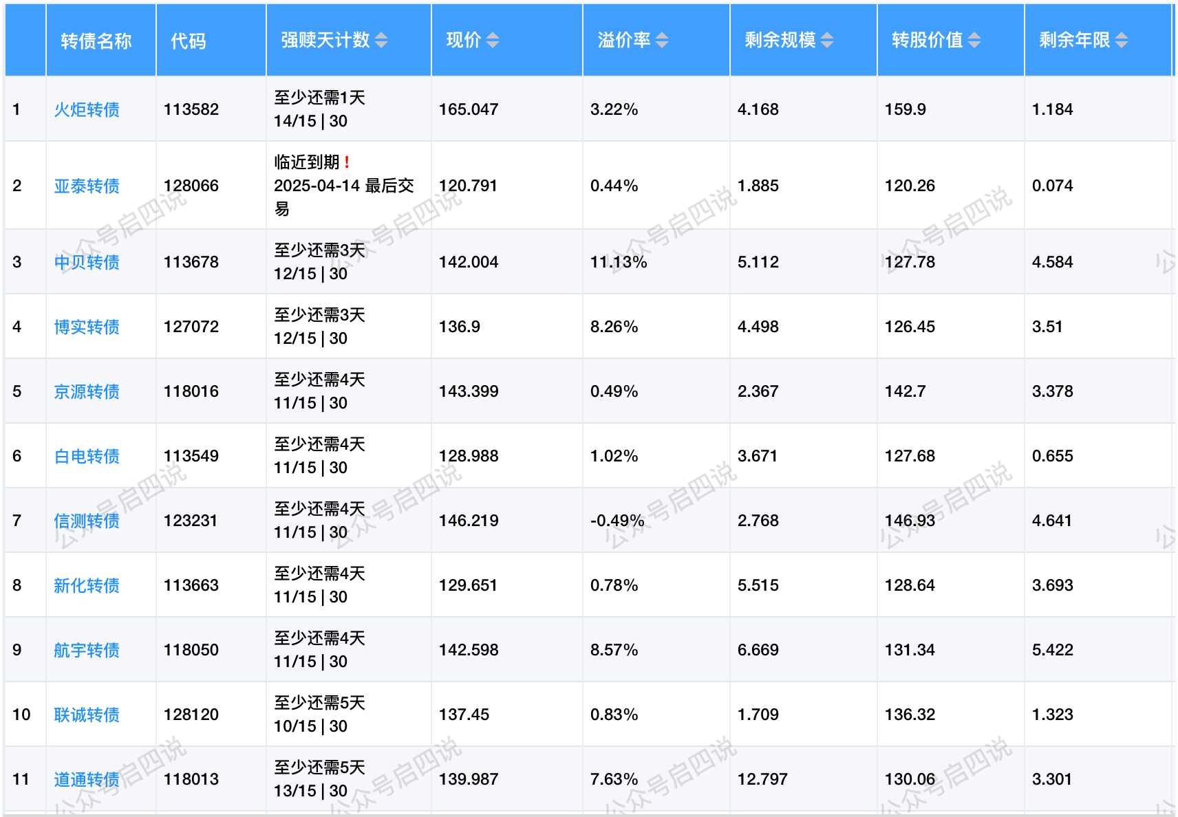 其中转股价值接近130元,且规模大于3亿或溢价率大于3%的转债,需要注意强赎后杀溢价的风险。