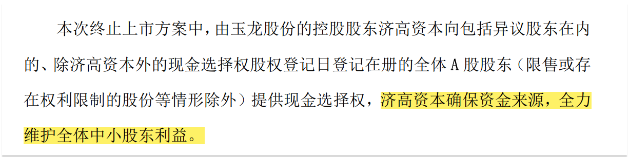 玉龙股份退市公告中的【异议股东及其他股东保护机制】,给包括异议股东在内的全体股东,提供了13.2元的现金选择权。