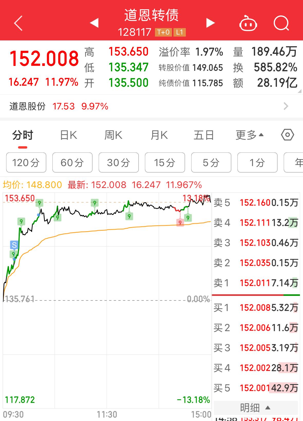 4)操作建议:如果中签,可以考虑设置回落条件单+止损条件单,基准价125元,回落0.5%/止损条件0.5%,买三价卖出。