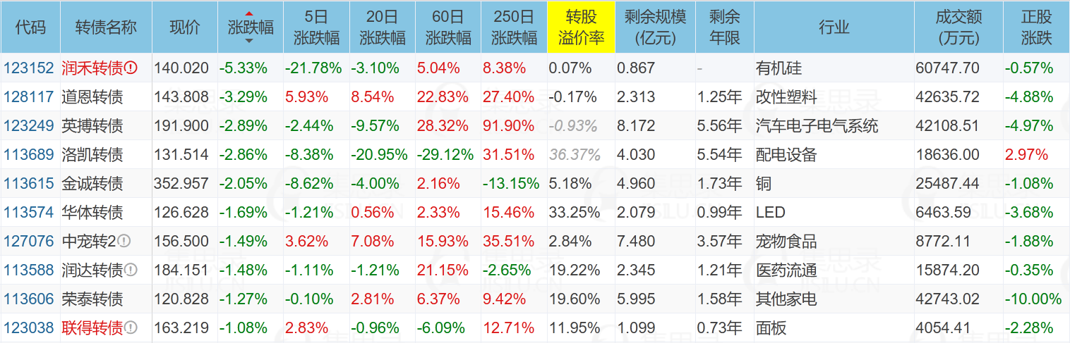 ✦今日跌停转债/正股: