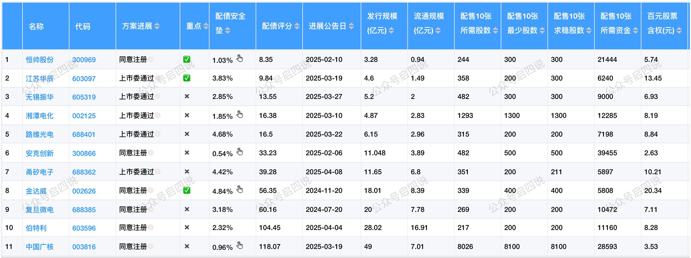 目前有11只配债股在同意注册或上市委通过阶段,在等待发行中。