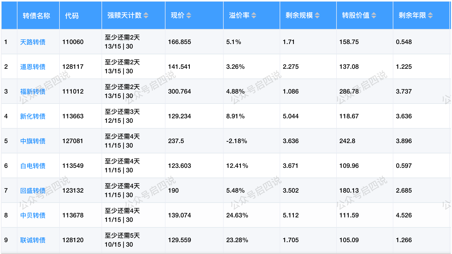 未来5个交易日内,将有9只转债最快可以满足强赎条件。