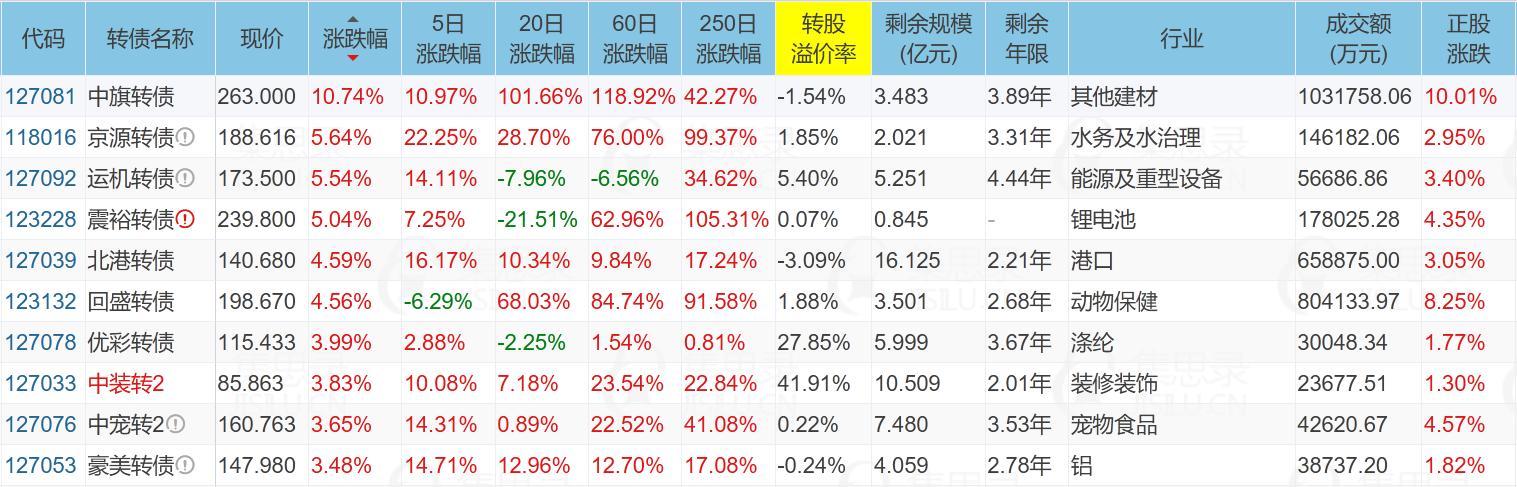 中旗转债:⾄少还需3天,溢价率-1.54%