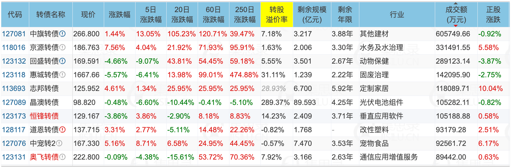 2、中旗转债,未来3个月不强赎。现价266.8元,溢价率7.18%。合理溢价率-1%~3%,个人认为现在高估。