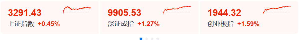 A股三大指数今日集体上涨,截至收盘,沪指涨0.45%,深成指涨1.27%,创业板指涨1.59%,北证50指数涨2.63%。全市场成交额10736亿元,较上日放量1244亿元。全市场超4300只个股上涨。