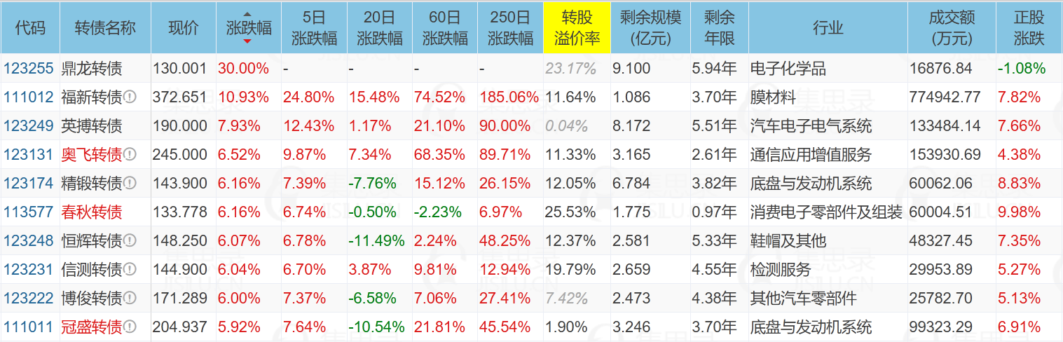 1、涨幅榜前十