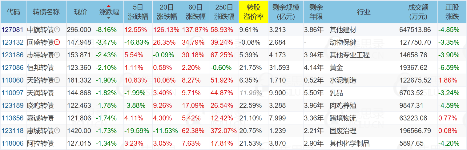 ✦今日跌停转债/正股: