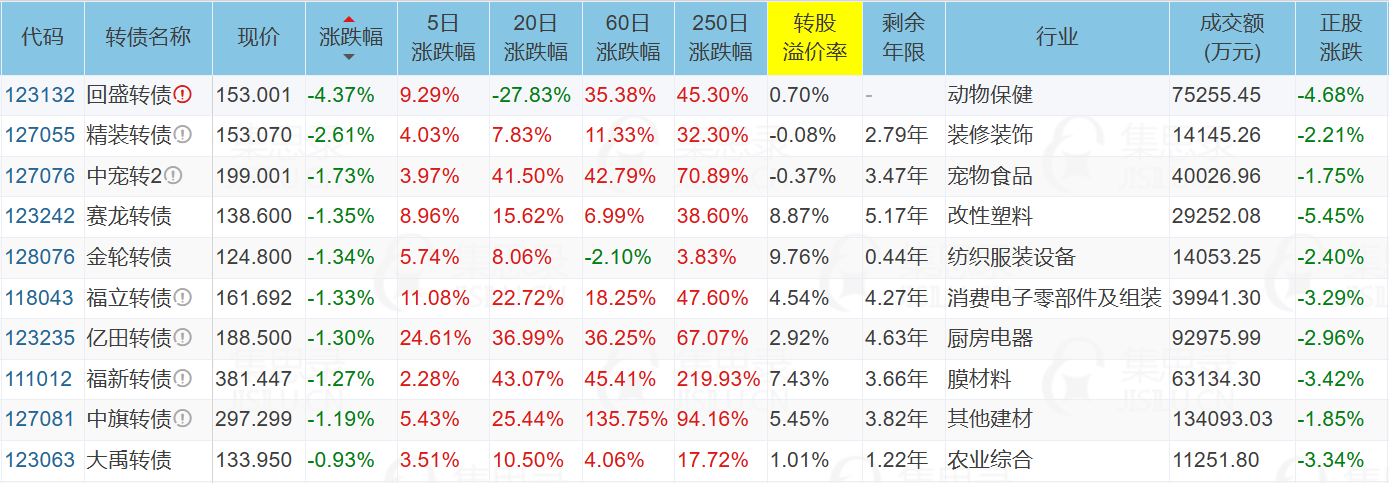 代表债:佳力转债、华翔转债、章鼓转债