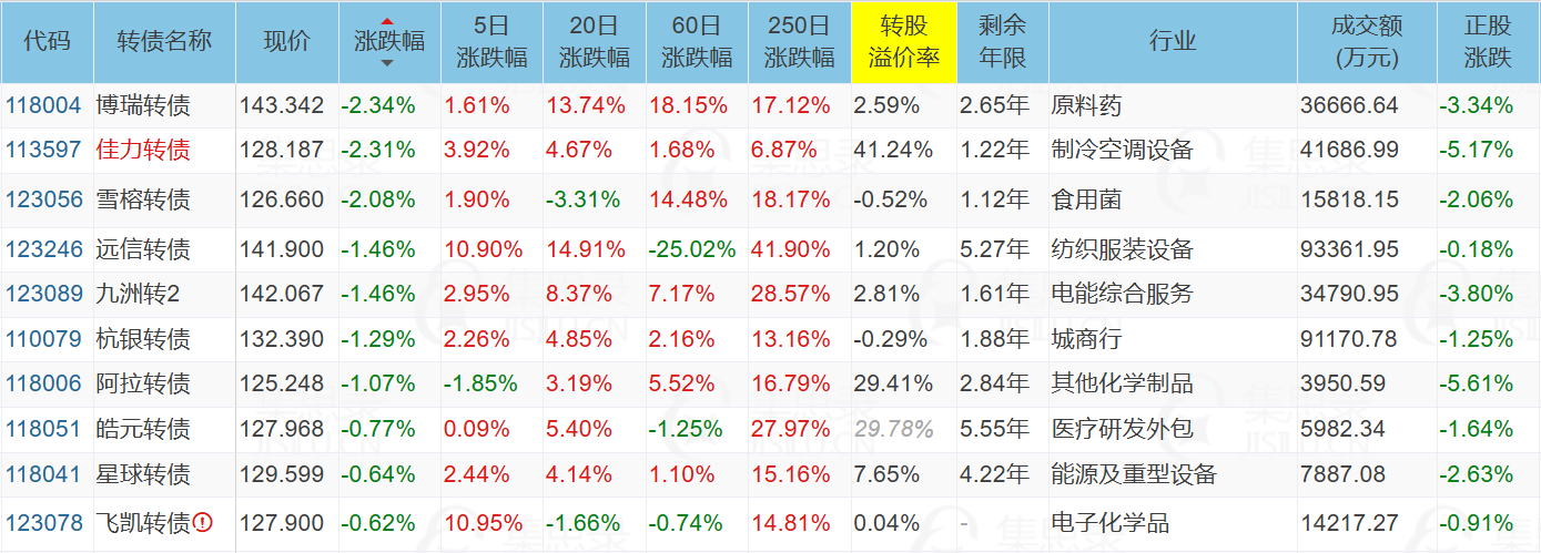 ✦今日跌停转债/正股: