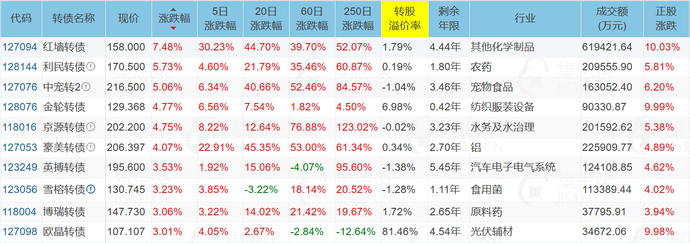 红墙股份/红墙转债:石油化工概念,理由:双季戊四醇价格上调,年内涨幅近60%。公司发布羟基酯产品涨价通知函。
