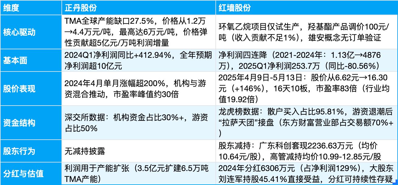 它当时的逻辑是英力士停产→TMA供需失衡→价格暴涨→正丹业绩暴增预期→游资炒作+散户跟风→股价短期超涨。