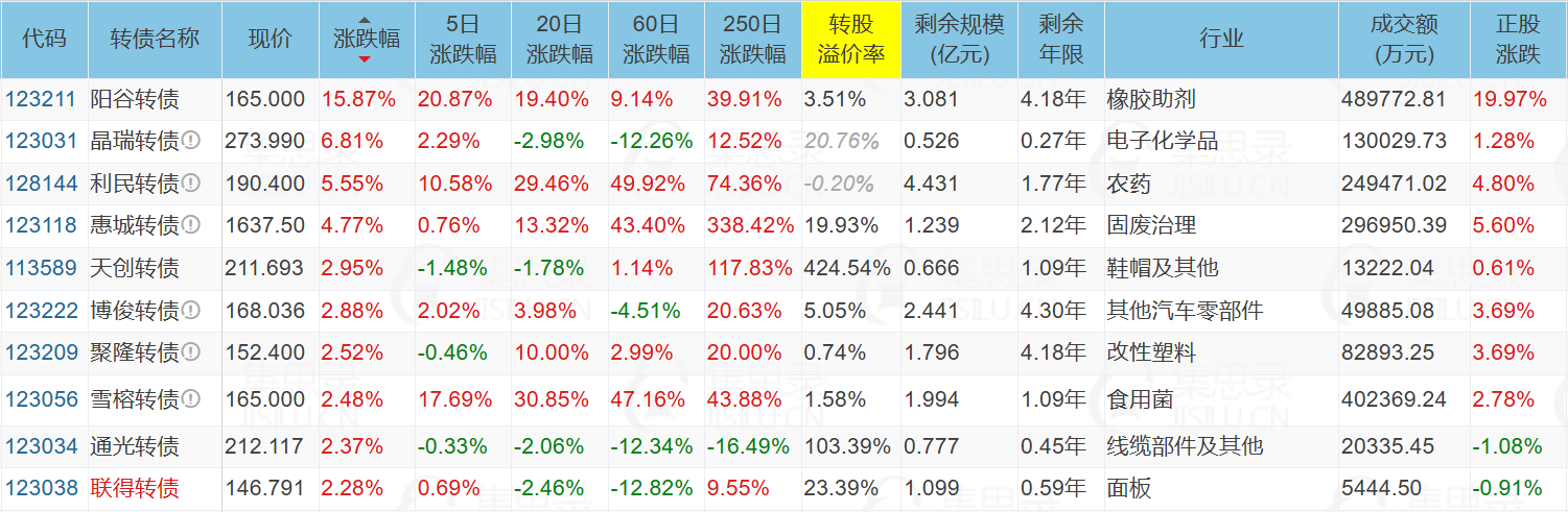 泰坦股份(-10.00%)、阳谷华泰(19.97%)、塞力医疗(10.04%)、阳谷转债(15.87%)