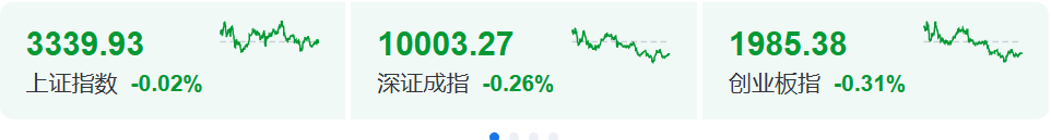 A股三大指数今日集体调整,截至收盘,沪指跌0.02%,深成指跌0.26%,创业板指跌0.31%,北证50指数跌1.39%。全市场成交额10339亿元,较上日放量98亿元。全市场近3500只个股飘绿。